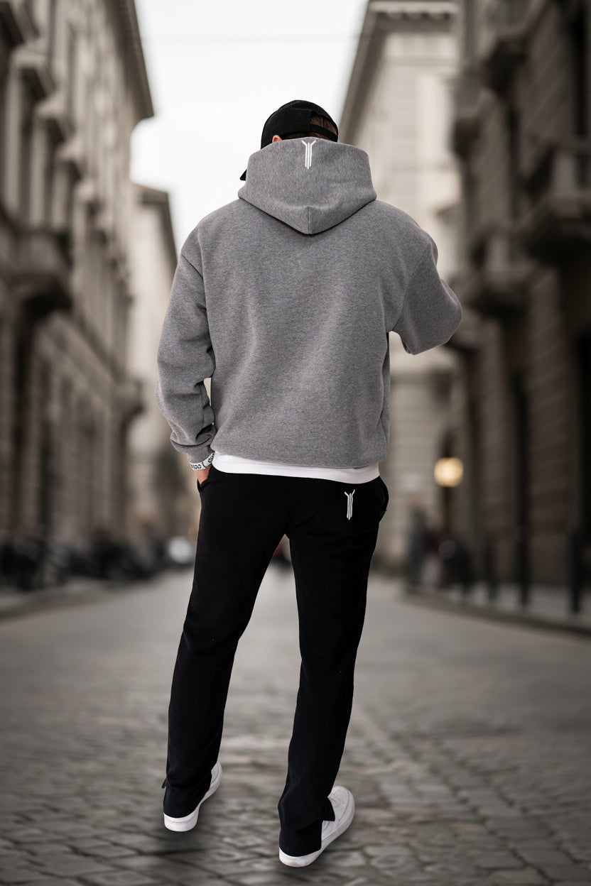 A defining base layer engineered from 100% heavyweight Italian cotton. We designed this piece to have its own architectural presence—it does not cling or drape; it holds its shape. The silhouette features substantial drop shoulders and wide, elbow-length sleeves for a modern oversized aesthetic, anchored by a high-density ribbed mock-neck collar that sits tight against the throat.